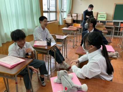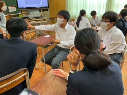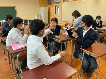 日本語で示したある出来事を、英語でペアに伝えます。