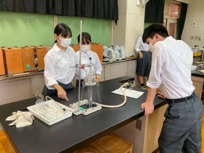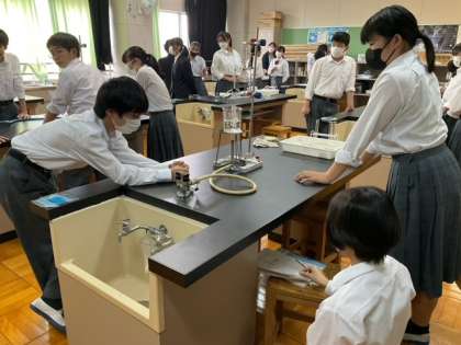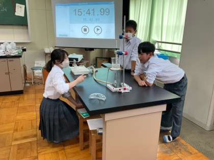 理科室で実験中です。
