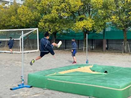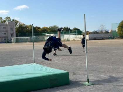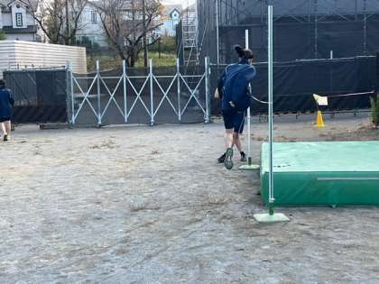 走り高跳びの練習をしています。