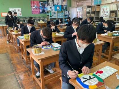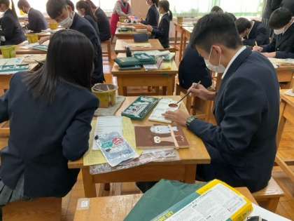 テスト返却が終わり、残りの時間で木彫時計制作の続きをしています。