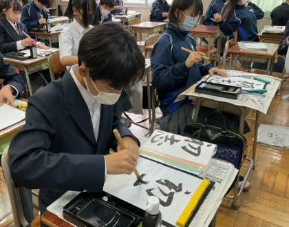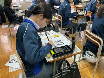 動画も活用して、筆の運ぶ方を確認しています。