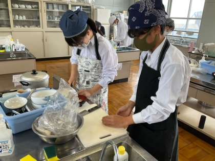 調理実習をしています。