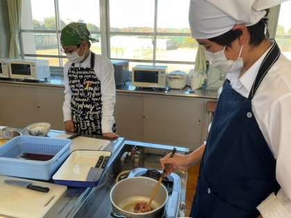 お肉を炒めています。
