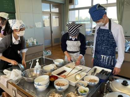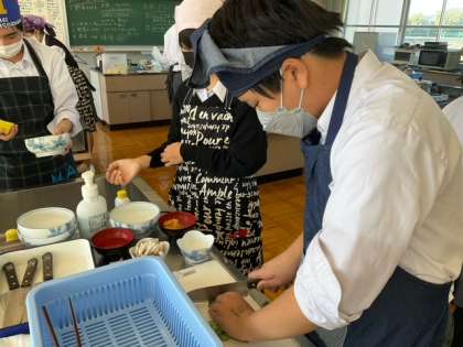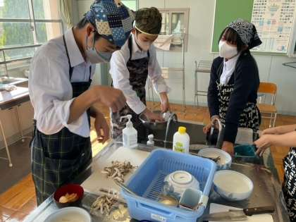 野菜を煮ている間に、ねぎとしめじの準備をしています。