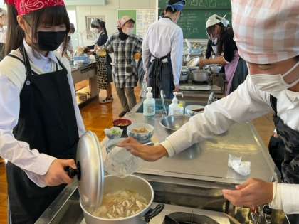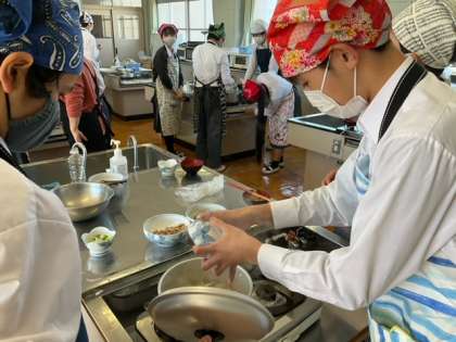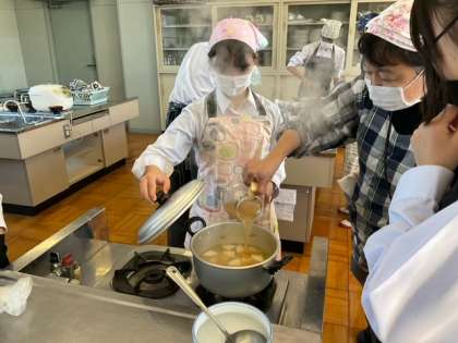 ジャガイモが煮えたら、しめじと出汁をお鍋に入れます。