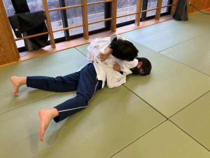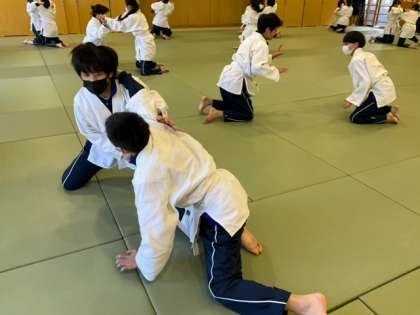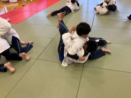 袈裟固めの練習をしています。