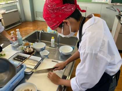 この間に、ネギを切り、しめじを洗っておきます。