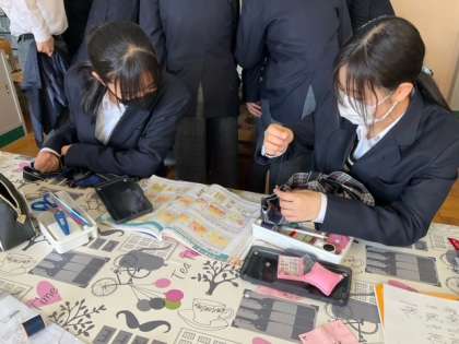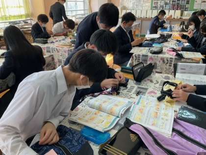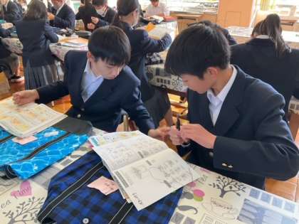 教科書やプリントを見ながら作業をしています。