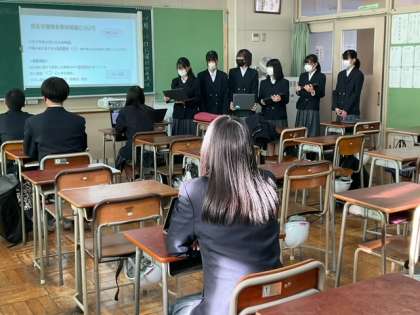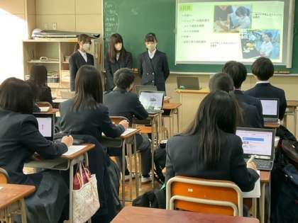 職場体験の発表をしています。