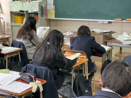 テスト直しが終わって、教科書を黙読しています。