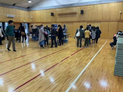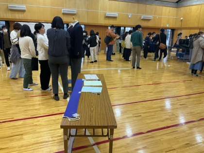 新1年生の標準服の採寸会場の様子です。