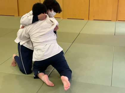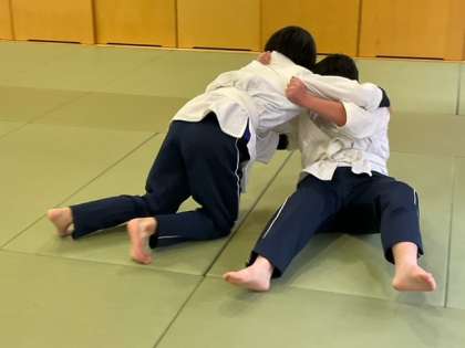柔道の実技テストをしています。