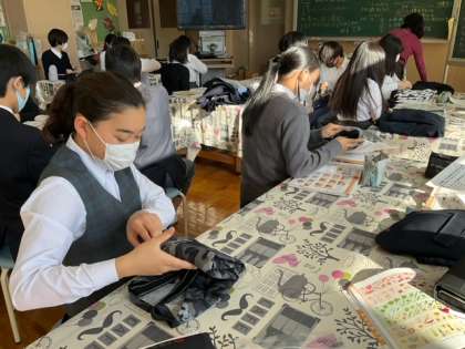 来週は、このエプロンをつけて調理実習をします。