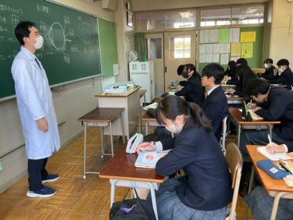 目の各部位の名称と機能を確認しています。