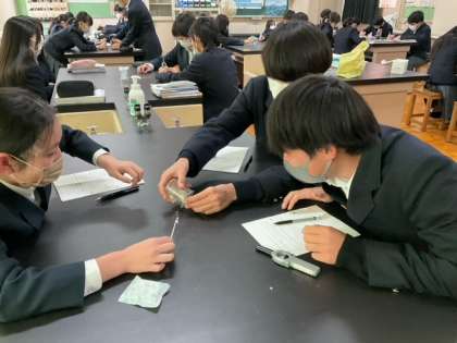 冷たい空気と暖かい空気がぶつかると、どうなるかを確かめるようです。