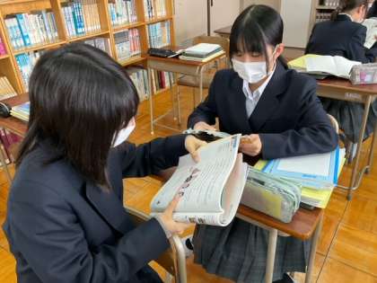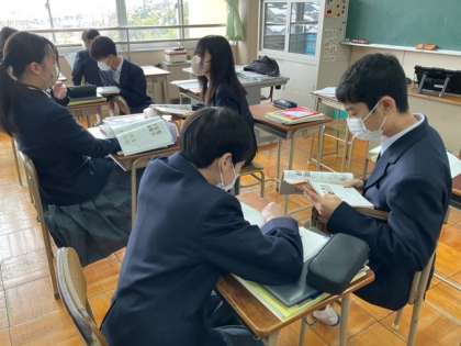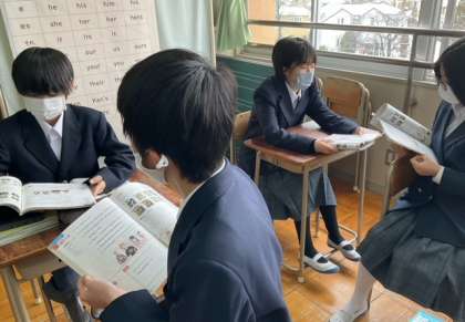 ペアで教科書の音読をしています。