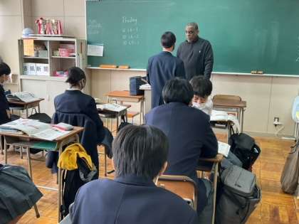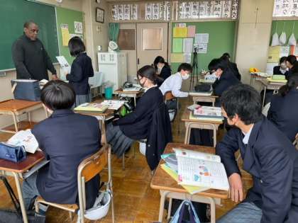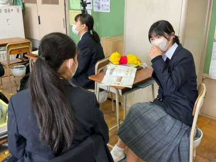 ALTの先生に音読して、質問に答えます。
