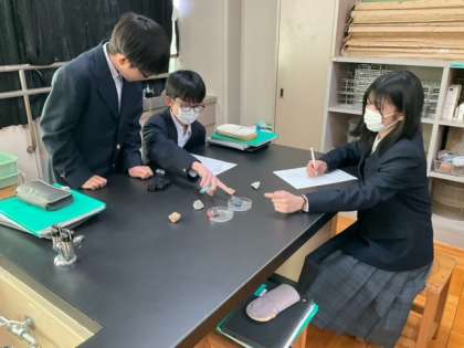 堆積岩の観察をします。