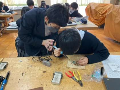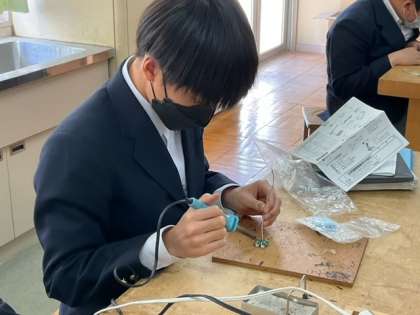 発光ダイオードをはんだ付けしています。
