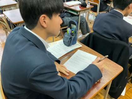 ワークシートで箱ひげ図の問題演習をしています。