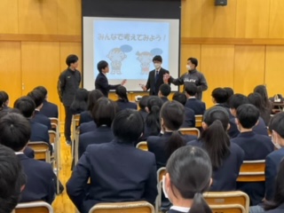 代表生徒がロールプレイで断り方を確認しました。