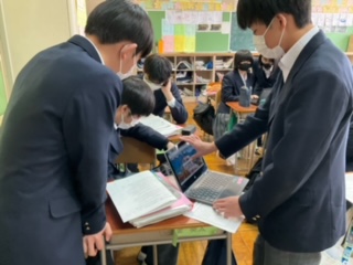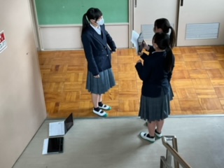廊下で撮影している生徒もいます。