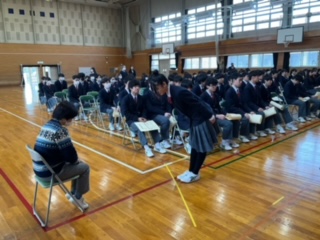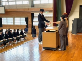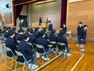 今日は、全員が卒業証書を受け取る練習します。