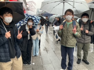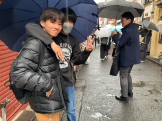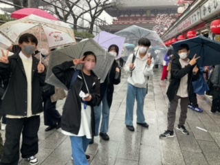 仲見世通りで生徒たちに会いました。