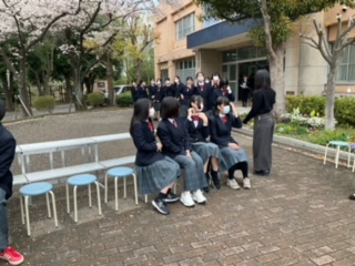 雨が止むのを待って3年生の撮影を始めました。