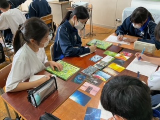 選んだ理由をワークシートに書いています。