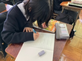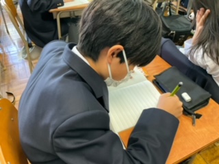 アルファベットを書く練習をしています。