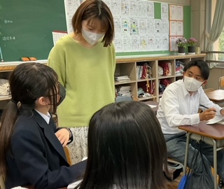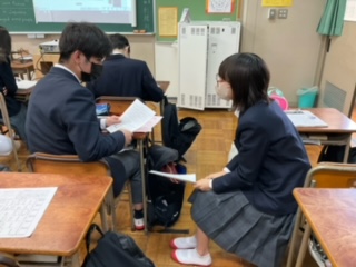 友達と意見交換をしています。