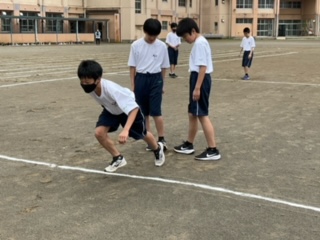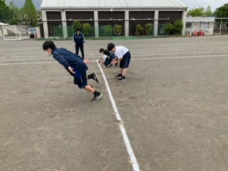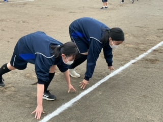 クラウチングスタートの練習をしています。