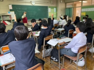 解答を板書したい希望者から、じゃんけんで選んでいます。