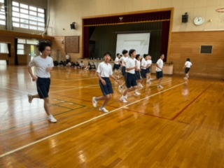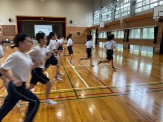 体力テストのシャトルランをしています。