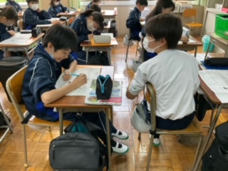 友達と意見交換をしています。