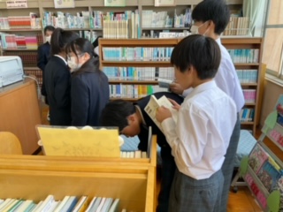 中学校の図書室の利用方法を確認しています。