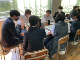 4グループに分かれ話し合いをしています。