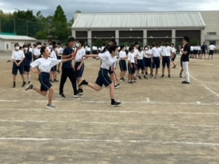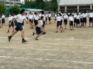 2年生は、全員リレーの練習をしています。