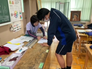 透視図を使った平面構成の作品づくりです。