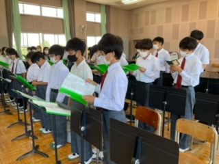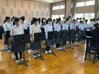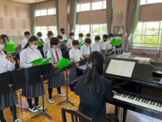 校歌の練習をしています。