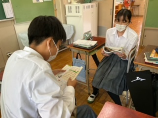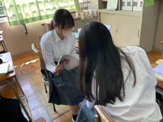 ペアで暗唱の練習をしています。