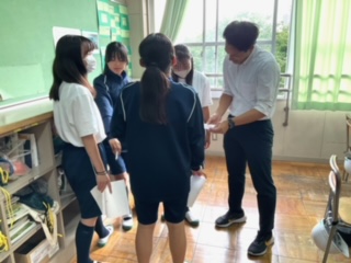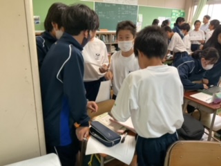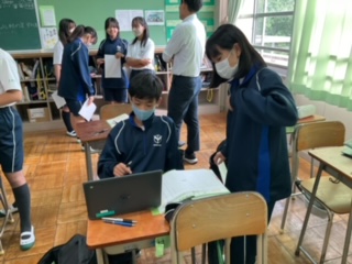 友達と意見交流をしています。