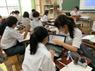 問題を出し合って学習する生徒もいます。