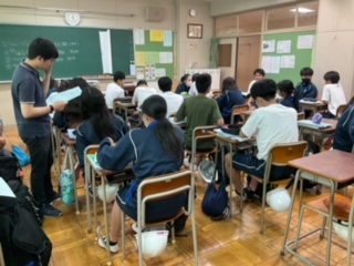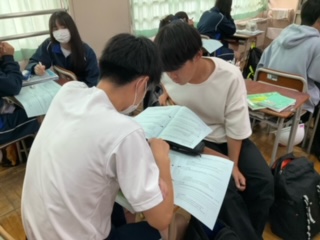 友達と相談しながら解いています。