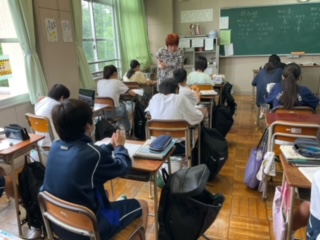 ワークシートの答え合わせをしています。