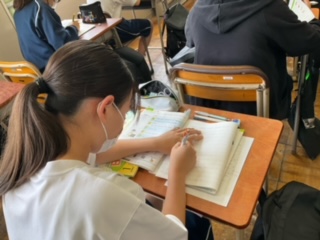 こちらは、新出単語を書く練習をしています。