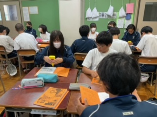 修学旅行のしおりを製本しています。