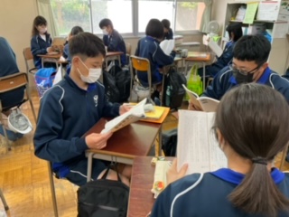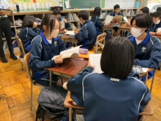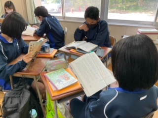 3人のグループで、一文ずつ音読しています。