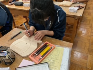 木彫時計の彫り作業をしています。